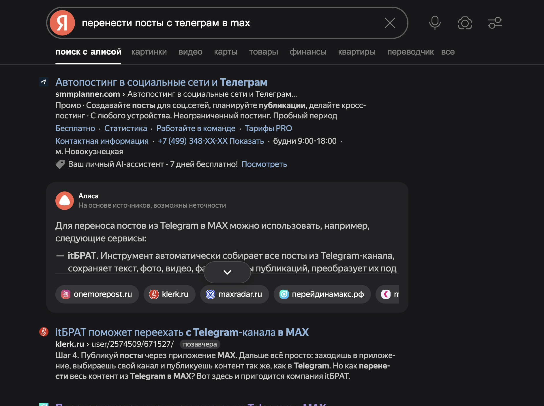 пенос постов из телеграмма в max